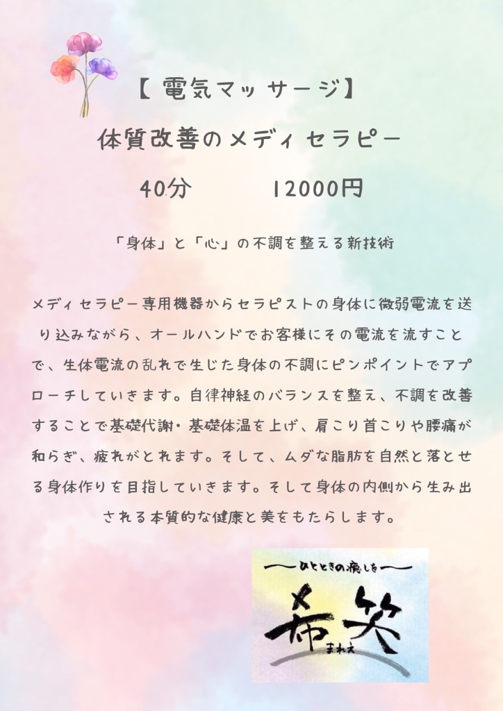 #電気マッサージ #メディセラピー #メニュー