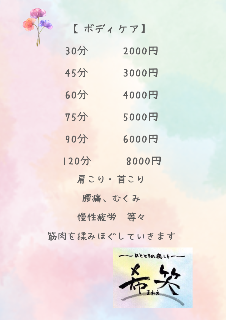 #ボディケア #メニュー