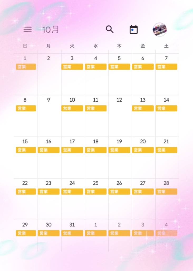 10月の営業予定日です(^^)