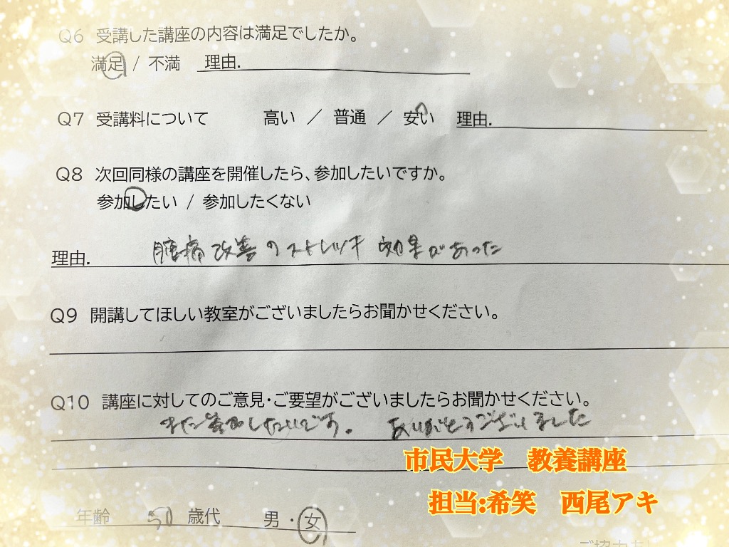先日、今年度も担当させてもらってた市民大学の教養講座、むくみデトックス教室が終了しました〜!